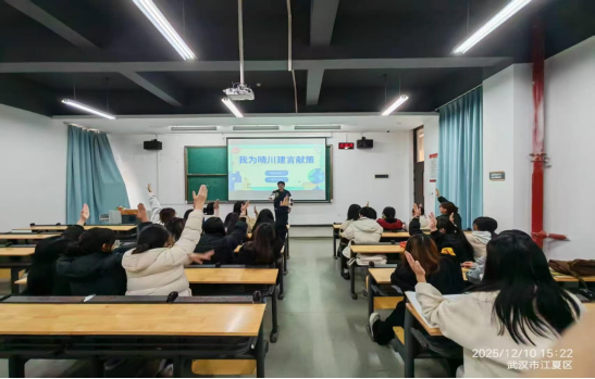 班会上举行了“我为班级建言献策“我为晴川建言献策”活动,同学们积极参与,提出了“组建学习互助小组”,“常态化开展班级团建活动”等许多实用的建议。班委们认真听取和记录了每位同学的意见和建议,并开展了针对性的改进工作,进一步完善班级的日常管理和班风建设。
