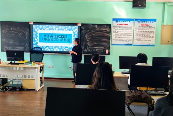 11月12日,商务英语专业2026届毕业生实习动员会在综2-403举行。全体商务英语专业毕业生齐聚一堂,聆听离校实习前“最后一课”,为踏入工作岗位做好准备。