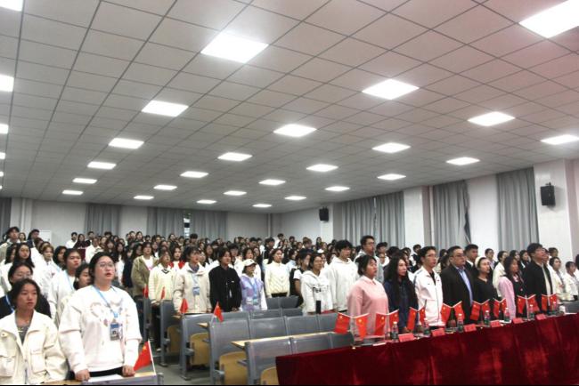 大会在庄严的国歌声中拉开帷幕,现场气氛庄重而热烈。