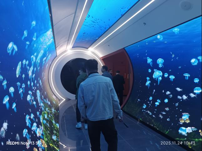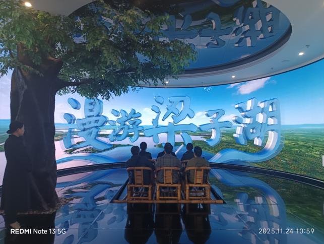 在“人水和谐,未来梁子”展示区,老师们通过沉浸式影院、VR体验等方式看到了梁子湖区未来绿色发展新模式。
