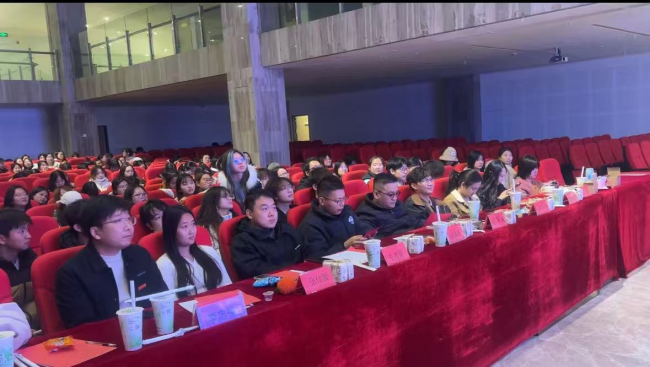 为丰富校园文化生活、提升语言应用能力与艺术表现力。12月3日晚,由外国语学院承办的校园文化艺术节之“音你精彩,声声入耳”多语种配音大赛在文澜报告厅顺利举办。外国语学院党总支书记刘泽政、计算机学院团总支书记余延旺、会计学院辅导员张佳爱、外国语学院学前教育教师李秋辰、外国语学院辅导员王银燕、陈哲、左志雷老师担任评委,外国语学院2025级各专业学生现场观摩了比赛。