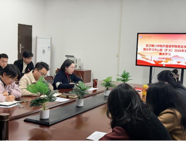 3月23日下午,外国语学院党总支理论学习中心组组织在综二413会议室开展2026年3月集体(扩大)学习。外国语学院党政领导班子、各支部书记、各系(部)负责人、全体辅导员老师参加。