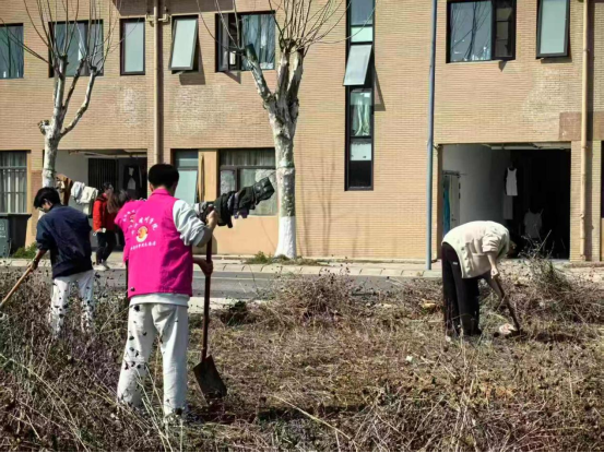 在翻土作业中,志愿者们手持工具,深耕细作、有序翻整花园土壤,疏松板结土层,改善土壤透气性与肥力,为后续果蔬种植培育创造优质的生长条件。