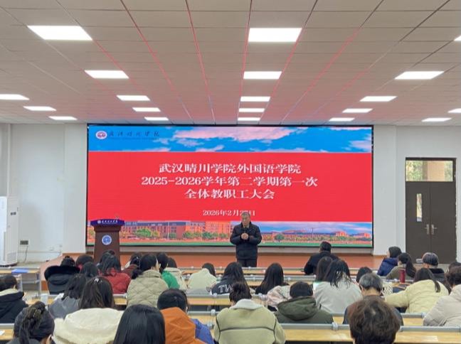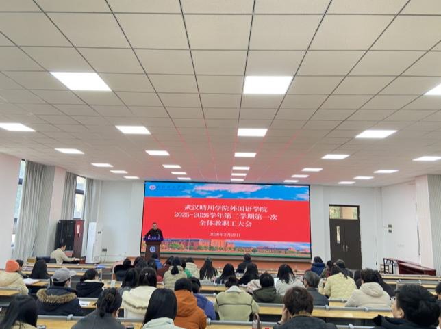 2月27日上午,外国语学院在综二105求索报告厅组织召开2025—2026学年第二学期第一次教职工全体大会,会议由办公室主任蔡林主持。