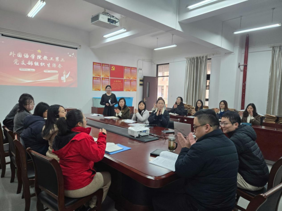 3月18日下午,外国语学院教工第二党支部在综二413会议室召开2025年度组织生活会。校党委组织部谷诚同志给予全程指导,学院党总支书记刘泽政同志履行全程把控职责,会议由党支部书记范云主持,党支部24名党员参加。